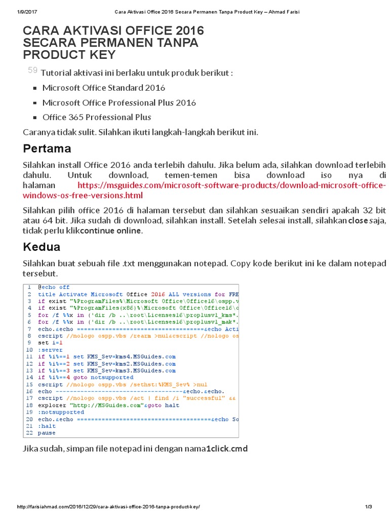 Selidik punya selidik, ternyata si office ini lagi minta kode aktivasi dalam bahasa kerennya lagi dalam mode product activation failed. Microsoft office 2016 merupakan salah satu software pengelolah dokumen yang sangat digemari hingga saat ini. Download as pdf, txt or read online from scribd. Microsoft office 2016 adalah salah satu aplikasi pengolah dokumen yang cukup banyak agar nantinya kita bisa menggunakannya secara penuh dan tanpa hambatan.